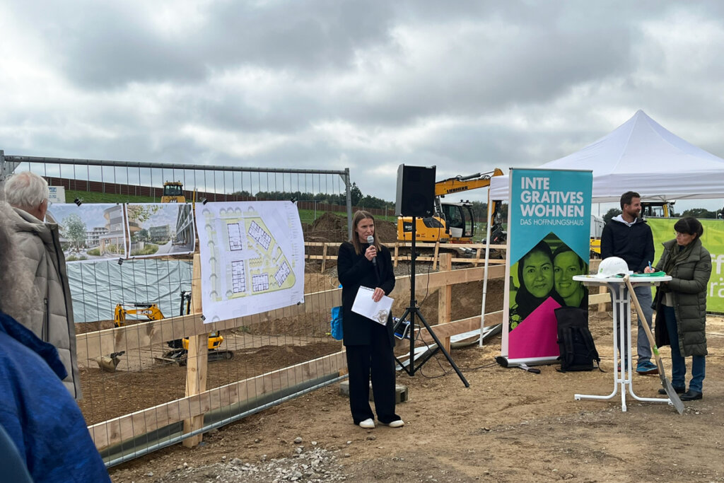 Gemeinsam mit Baubürgermeister Tim von Winning, Ursula Merckle für die RAM-Stiftung und Thomas Röhm von der Hoffnungsträger Stiftung setzte Julika symbolisch den Spatenstich und vergrub die Zeitkapsel – ein Zeichen für den Beginn eines zukunftsweisenden Projekts, das Gemeinschaft und Zusammenhalt fördern soll.