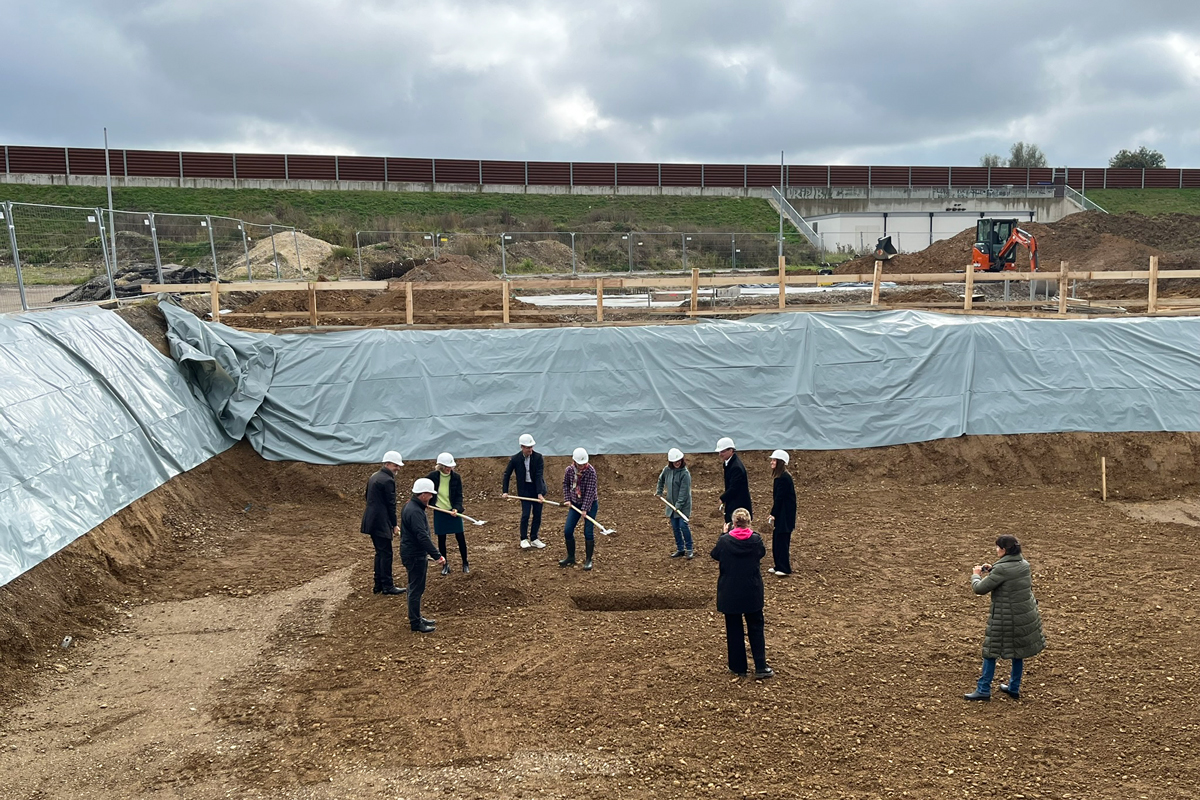 Gemeinsam mit Baubürgermeister Tim von Winning, Ursula Merckle für die RAM-Stiftung und Thomas Röhm von der Hoffnungsträger Stiftung setzte Julika symbolisch den Spatenstich und vergrub die Zeitkapsel – ein Zeichen für den Beginn eines zukunftsweisenden Projekts, das Gemeinschaft und Zusammenhalt fördern soll.